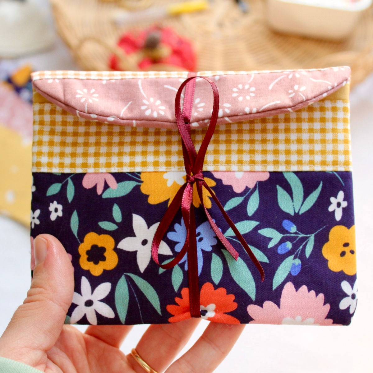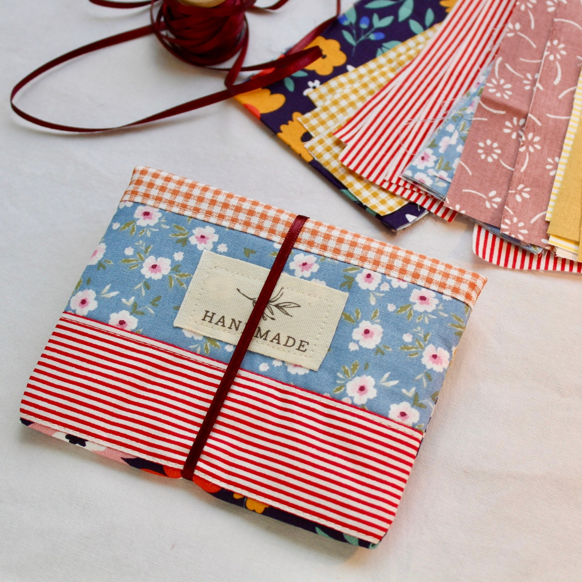 Bu özel tasarım patchwork (kırkyama) cüzdan dikiş kiti, uyumlu pamuklu kumaş kombinleriyle hazırlandı.