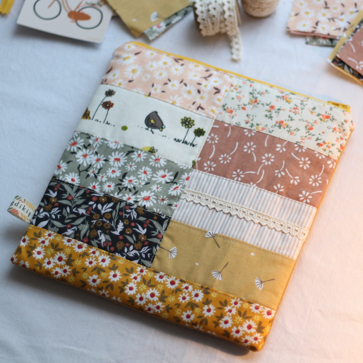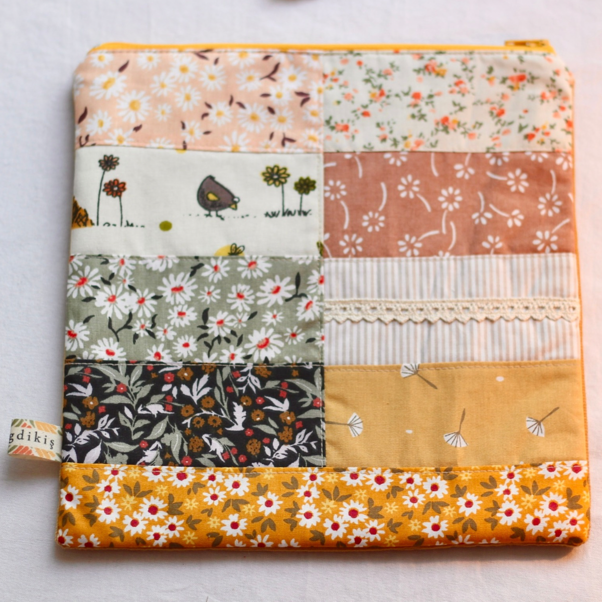 Zigzagdikis Patchwork Makyaj Çantası – Çiçek Desenli, Sıcak Renkli El Yapımı Çanta