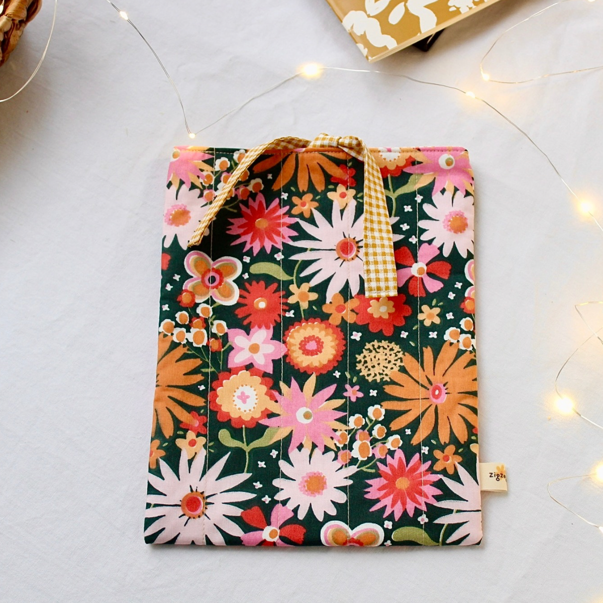 Renkli çiçek desenli kapitone kumaştan üretilen bu kitap kılıfı, fiyonk kapamalı şıklığıyla kitaplarınızı korurken tarzınızı yansıtmanızı sağlar. Dayanıklı yapısı sayesinde kitaplarınızı çizilmelere ve kirlenmeye karşı korur. Hafif ve taşınabilir tasarımıyla her yerde rahatlıkla kullanabilirsiniz.
